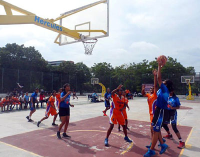 The traditional game of basketball is played by two teams of five players on a rectangular court with the purpose of the game being to score field goals. The objective is to shoot the basketball through a Hoop (basketball ring) mounted on a backboard 10 feet (3.05 meters) off the ground. A field goal scores two (2) points for your team, whilst a shot made from behind the ‘3-point arc’ scores three (3) points. At the conclusion of the game, the team with the highest score wins. Basketball is played by both able bodied and disable bodied participants as well as those with an intellectual disability. A variety of non-traditional game formats also exist including ‘3x3’ (Three on Three) and ‘Street Ball’.