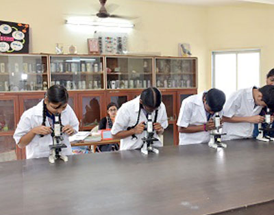 On entering there is a very colorful and panoramic view of models of human anatomy, insect cycle and many other topics made by our students under the guidance of our teachers. There is a plethora of specimens in jars and also charts to be used as models for teaching. Also we have a projection microscope in which the image formed by the microscope is projected onto a bigger screen, which enables many students to see it at the same line thereby conserving time in the classes. Biology Lab is very spacious and well designed with Museum, faculty and storeroom.