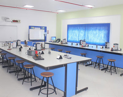 We are here greeted by the pungent smell of Ammonia, which is a testimony to a very active Chemistry Lab. Under the strict and alert vigilance of teachers and assistant, the students perform various tests and analysis of salts and solutions. A separate measurement room ensures the accurate measurement of chemicals for the volumetric analysis experiments. The Chemistry lab is spacious enough for every individual student to perform experiments individually as each student is provided with separate set of apparatus for experiments. The lab has arranged for gas pipelines for instead of ordinary spirit lamps. The lab is fully equipped with chemicals and apparatus as per the CBSE syllabus & guidelines. The chemistry lab is well ventilated with proper disposal of poisonous gases. It also provides separate weighing room to students.